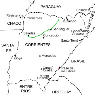 Before 1980 there was another road with this number. It was the route in the NW of Corrientes Province, marked in green on the map and now called National Route 118. Decree #1595 of 1979,[2] ceded the previous road to the administration of Corrientes Province. Decree 1715 from 1988 annuls the previous decree and this road became National Route 118 as number 117 had been used on this road.