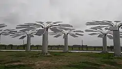 In order to reinstate the virtue of Self-sufficiency reinforced by Gandhi in the Freedom Struggle, the memorial is made self-sufficient for its energy needs. To achieve this 40 Solar Trees are installed. This makes this memorial a net zero-energy project. The energy produced during the day is exported to the electricity grid and during the night, the energy required is imported back from the grid. This system avoids need to install and maintain expensive batteries.[1]