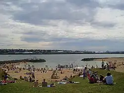 Nauthólsvík (Icelandic pronunciation: [ˈnœytˌhoulsˌviːk], "bull hill bay") is a Seaside resort and a small neighbourhood in Reykjavík, the capital city of Iceland, about 900 metres (3,000 ft) from Perlan. It has a beach with an artificial hot spring – hot water is pumped into a man-made lagoon.[1]