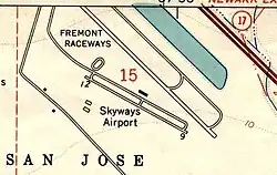 Heath NOLF, Heath Naval Outlying Landing Field was a World War 2 training airstrip used from 1943 to 1945. The Navy leased 160 acres from the Heath family in Fremont, California, south of the city center at 37°30′N 121°58′W / 37.5°N 121.96°W. Heath NOLF had a northwest/southeast 3,100-foot concrete runway. In 1950 the runway became a civil airport, Skyways Airport, later in 1959 renamed Sky Sailing sailplane field, Sky Sailing Airport in 1959. The Sky Sailing Airport was a very active glider airport with a glider school, paid glider rides, and private gliders parked there. The Fremont Dragstrip also operated at the airport from 1959 until the end of 1988. The I-880 freeway was built on part of the old Heath NOLF in 1984. The airport closed in June of 1989 and is now commercial property.[8]