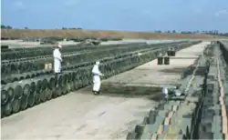 During the Vietnam War, NCBC Gulfport was the largest storage site in the United States for Agent Orange prior to shipment to Southeast Asia.[10] In 1968, the base received 68,700 55-gallon barrels of herbicide for shipment to Vietnam.[11] Long-term storage of barrels began in 1969 and lasted until 1977.[11] The storage site was 30 acres (12 ha) in size and was still being cleaned up in 2013.[10][12][13]