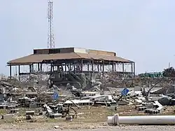 In 1969, before, during, and after the landfall of Hurricane Camille, 1700 Seabees from NCBC Gulfport helped the surrounding communities prepare for and recover from the hurricane. NCBC served as a recovery center providing a staging site for over 500 Georgia Power repairmen and highway crews. Damage to the base was extensive with 25 structures completely destroyed. The Governor of Mississippi tasked the NCBC with the recovery of the area from Gulfport to west of Bay St. Louis.[14] That area was ground zero for Camille's landfall. Pass Christian was assigned to the 121st CB with the battalion setting up camp there,[14] working round the clock in two 12-hour shifts.[15] The military and civilian personnel received numerous medals and commendations from the Navy and local officials. When it was over the NCBC and CBs 74 and 121 all received Navy Unit Commendations.[16][14] Mississippi Governor John Bell Williams declared October 31, 1969 as "Seabees Awards Day".[17]
