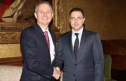 Nebojša Stefanović (Serbian Cyrillic: Небојша Стефановић, pronounced [nɛ̌bɔːjʃa stɛfǎːnɔʋitɕ]; born 20 November 1976) is a Serbian politician who served as deputy prime minister of Serbia from 2016 to 2022 and as minister of defence from 2020 to 2022. A member of the Serbian Progressive Party (SNS), he previously served as president of the National Assembly of Serbia from 2012 to 2014 and as minister of internal affairs from 2014 to 2020.[1][2]