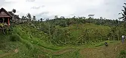A subak controls the water flowing from a single up-river dam. The water flows through its rice terraces to other subaks farther downstream. Once water flowed into a subak it was divided through a series of weirs so that each farmer would get the amount of water they needed at the right time. The regulation of water is thus a serious issue, and encounters regular bottlenecks where control of the supply for a whole subak can be seized. Controlling the complex flow of water within a subak was accomplished through a highly regimented series of rituals. Water temples placed at points of water division would coordinate the flow of water through carefully timed rituals. Geertz emphasizes that there is no central control of the timing of these rituals, and hence that the state is not an "oriental despotism" controlling the population through the control of water.[19]