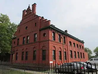 Although the modern city of Hartford was founded in 1636, farms only began to be established in the Parkville area after 1750.[1] In the 1870s large-scale industrial development began in Parkville as a shortage of construction materials affected the rest of the city, with its new industry later promoting the expansion of the neighborhood's residential areas. A brickyard was established in 1873, and a rubber works began operation in 1881.[1] Despite increasing industrialization, in 1878 residents of Parkville unsuccessfully attempted to secede from the rest of Hartford, with some claiming they were too highly taxed for how little-developed their neighborhood was, especially when compared to others nearby such as Frog Hollow.[1] As late as 1909, northern areas of Parkville remained largely vacant, with one section of Capitol Avenue between Arbor Street and Sisson Avenue containing only two houses. From continued industrial growth in the early-20th century however, the same area was entirely developed by 1912.[2]