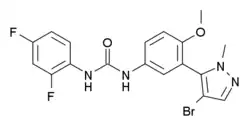 • Brc1cnn(C)c1-c2cc(ccc2OC)NC(=O)Nc3ccc(F)cc3F