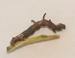 Larvae feed on various deciduous and coniferous trees and shrubs, including Pseudotsuga, Tsuga, Abies, Picea, Salix, Betula papyrifera, Corylus, Fragaria and carrot (Daucus).
