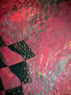 In even worse conditions is Quinchamalí (1958) at the Juan Esteban Montero Gallery: the paint of the mural is peeling and warping due to the humidity. The art restorer Carolina Broschek maintains that the mural can be saved, but the owner of the building on which it is painted, Yusif Tala, opined that the Nemesio Antúnez Foundation should take care of the painting or move it to another place, as has no interest in preserving it.[2] In the same gallery, besides the mural, Antúnez installed floor mosaics which are still in perfect condition.