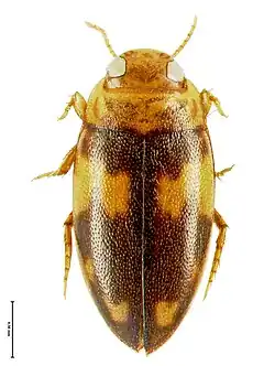 Neobidessodes flavosignatus is a carnivorous subterranean water beetle, in the Bidessini tribe of the Dytiscidae family.[1] It was first described in 1922 by Albrecht Zimmermann as Bidessus flavosignatus.[1][2] It was assigned to the genus Bidessodes by Watts in 1978,[1][3] and to the new genus of Neobidessodes in 2009 by Hendrich and others.[1][4]