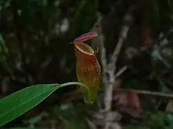 Nepenthes dubia /nɪˈpɛnθz ˈdbiə/ is a tropical pitcher plant endemic to the Indonesian island of Sumatra, where it grows at an altitude of 1,600–2,700 m above sea level.[6] The specific epithet dubia is the Latin word for "doubtful".