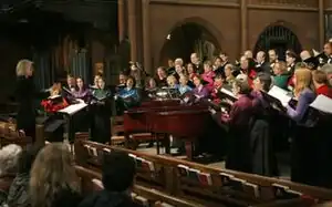 New Amsterdam Singers formed in 1971 from the remains of the Master Institute Chorus. Associated with the Bloomingdale House of Music from 1972 to 1978, the chorus became independent in 1978 and operates as a 501(c)(3) non-profit organization under the management of an elected board of directors. Noted for its "adventurous" programming[1] and "handsome" performances,[2] the chorus presents three subscriptions concerts per season at venues such as Merkin Hall, Holy Trinity Lutheran Church, Immanuel Lutheran Church and St. Peter's Church at Citicorp. The chorus rehearses at Broadway Presbyterian Church on the upper west side of Manhattan.[3]