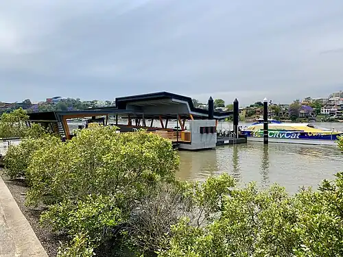 New Farm Park ferry wharf is located on the northern side of the Brisbane River serving the Brisbane suburb of New Farm in Queensland, Australia. It is served by RiverCity Ferries and was also served by a Cross River service to Norman Park.[1][2][3] The latter service was suspended in July 2020 and formally cancelled in October 2020.[4]