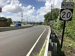 Route 20, known locally as McLean Boulevard, is a state highway that runs 4.15 miles (6.68 km) in New Jersey, United States. It runs along the east side of Paterson, Passaic County, following the west bank of the Passaic River between U.S. Route 46 and River Street (County Route 504), at which point County Route 504 begins. It is a four- to six-lane divided highway for most of its length that runs through residential and commercial areas of Paterson, intersecting with Interstate 80 and Route 4 at interchanges. The northernmost part of the route is a county-maintained one-way pair that follows 1st and 2nd Avenues.