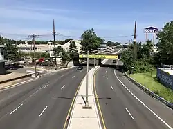 The present-day routing of Route 20 north of Market Street was legislated in 1927 as part of Route 3, which was to run from the New York border at Greenwood Lake to Secaucus.[3][4] In addition, the present day routing south of Route 4 was also legislated as part of that route, which was to run from the George Washington Bridge to Cape May.[3] In 1929, the western terminus of Route 3 was moved to Paterson as Route S4B (now Route 208) was planned to replace the alignment of Route 3 from Paterson to the New York border.[5] McLean Boulevard through Paterson was built by the 1930s.[6] A new highway was to be built connecting the two, bypassing the Paterson Plank Road to the north. In the 1953 New Jersey state highway renumbering, Route 20 was legislated to follow the former alignment of Route 3 between Paterson and East Rutherford as Route 3 was moved to the Route S3 freeway that was built between East Rutherford and Clifton.[7] By this point, the Paterson Plank Road was no longer in the state highway system.