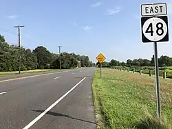 Route 48 is an east–west state highway in Salem County in the U.S. state of New Jersey. It is a 4.26-mile (6.86 km) route running from U.S. Route 130 (US 130) and County Route 675 (CR 675) in Penns Grove southeast to US 40 in Carneys Point Township. It is known as East Main Street from US 130 to DuPont Road, and as the Harding Highway from DuPont Road to its terminus at US 40. Route 48 is signed east–west, although it travels more northwest–southeast throughout its route. It is a two-lane, undivided road through its entire length that intersects with Interstate 295 (I-295) and CR 551.