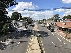 Route 82 continues eastward as the main arterial, passing between many residential homes in both directions. The highway then enters the center of Union Township, where it intersects with CR 619 (Stuyvesant Avenue) and to the north of Friberger Park. Morris Avenue continues through a largely residential and commercial district in Union before crossing under the westbound lanes of US 22 and the eight lanes of the Garden State Parkway. Route 82 then passes under the eastbound lanes of US 22 before continuing along Morris Avenue into Union Township. A short distance later, the route approaches an intersection with a shopping mall access road before passing to the north of the local golf club, Suburban Golf. Route 82 and Morris Avenue continue eastward, passing through the middle of residential neighborhoods as a four-lane boulevard. A short distance after the golf club, the highway intersects CR 509 (Salem Avenue). From there, Route 82 becomes a divided arterial, passing to the south of Elizabeth River Park and crossing under Conrail Shared Assets Operations' Lehigh Line, which also carries NJ Transit's Raritan Valley Line. The nearby intersection for Green Lane serves the nearby Union station along the rail line. After the intersection with Green Lane, Route 82 enters the area of Kean University, which surrounds the highway in both directions. After intersecting with the university's access roads, Route 82 crosses through a wooded area before terminating at an intersection with Route 439 (North Avenue). Morris Avenue continues eastward as CR 629.[3]