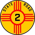 New Mexico State Road 2 (NM 2) is a state highway in the state of New Mexico. It travels southeast from U.S. Route 285 (US 285), outside of Roswell, New Mexico, passing through Midway. While in Dexter, it turns right as Old Dexter Highway and passes through Greenfield, Hagerman, and Lake Arthur, before ending back at US 285.