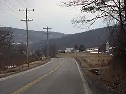 NY 446 begins at an intersection with NY 16 in the Hinsdale hamlet of Maplehurst, located a quarter-mile (0.40 km) north of exit 27 on the Southern Tier Expressway (I-86 and NY 17) and roughly one mile (1.6 km) north of the larger community of Hinsdale. The route heads northeast through the town of Hinsdale along the base of a valley surrounding Oil Creek. While NY 446 follows the north bank of the creek, the Southern Tier Expressway and the adjacent Western New York and Pennsylvania Railroad (WNYP) run along the southern bank.[3]