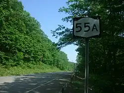 New York State Route 55A (NY 55A) is a state highway located in Sullivan and Ulster counties. It is a loop route connected to NY 55 at both ends, near Grahamsville in the west and Napanoch in the east. Inside the loop is New York City's Rondout Reservoir.