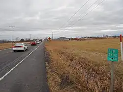 On November 1, 2005, the Niagara County Legislature voted on a measure to allow the county to ask the New York State Department of Transportation (NYSDOT) to remove the NY 93 designation from Upper Mountain Road, a county-maintained highway, and reassign it to Junction Road (NY 270) and Saunders Settlement Road (NY 31).[25][26] The impetus for the change came from a resident of Upper Mountain Road, who demanded that trucks should be removed from the roadway.[27] This part of the agenda was passed.[26] NYSDOT obliged to the request in 2006,[27] rerouting NY 93 as proposed and truncating NY 270 southward to NY 31.[28]