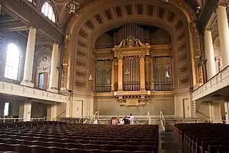 The Newberry Memorial Organ[1] is among the largest and most notable symphonic organs in the world. Located in Woolsey Hall at Yale University, the organ contains 197 ranks and 166 stops comprising 12,617 pipes.