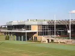Other local government heritage listings across the Newington campuses include the former Stanmore Methodist Church, also designed by Rowe in 1874 and now part of the Duckmanton Drama Centre[21] and the Victorian Italianate-style parsonage that is now the Deputy Headmaster's residence;[22] and at Abbotsford, the late 20th Century Robert Glasson Boatshed that replaced the 1920s original.[23] A gymnasium was built in 1890, and a swimming pool was opened in 1894 however both have been replaced by a multi-court gymnasium and indoor swimming pool.