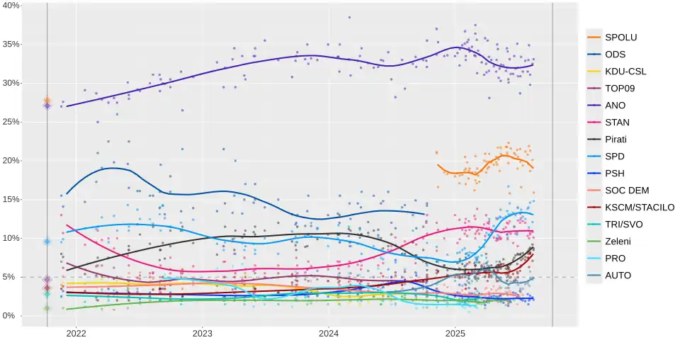 3. ^ "Czech populist opposition leads as election set for October". Reuters. 13 May 2025. Retrieved 13 August 2025.