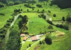 The marae at Tarata, on a bend of the upper Waitara River
