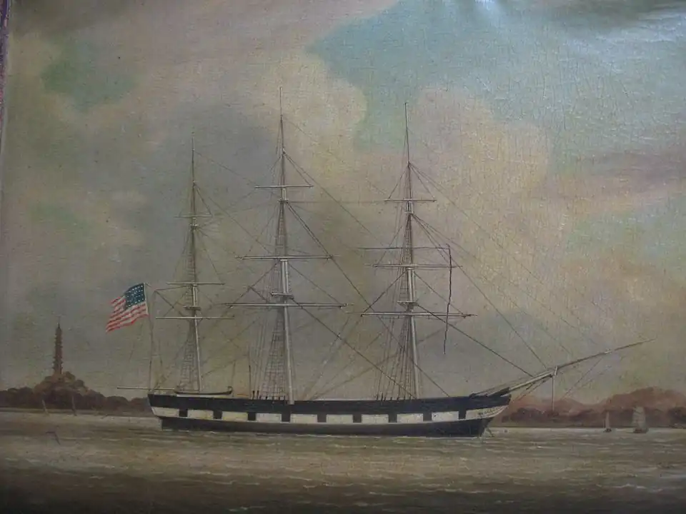 The Niantic was built in 1832 in Connecticut; it was originally intended for trade with China. The owners in 1840 appear to have been N. L. and G. Griswold of New York.[1] In 1840, the Niantic sailed, with Captain Doty in command (Captain Robert Bennett Forbes acting), with tea and silk from Port of Canton to an unstated destination (perhaps New York) via Anjer (Anyer), Indonesia, just missing a blockade by the British in Canton as part of the First Opium War. "Probably this was the last and most profitable voyage of Niantic as a merchant ship."[1]