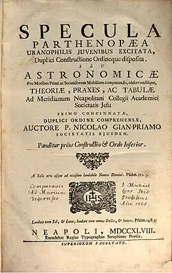 • Specula Parthenopaea uranophilis juvenibus excitata (in Latin). Vol. 1. Napoli: Serafino Porsile. 1748.