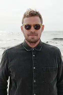 Nicolai Nørregaard on the beach outside Kadeau Bornholm