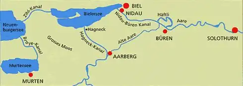 - ^ "Nidau-Büren-Kanal". Canton of Bern (in German). Amt für Wasser und Abfall. Retrieved 13 June 2025.