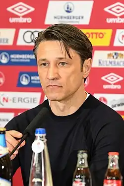 He ended his playing career with Austrian club Red Bull Salzburg, where he then took the non-playing role of the reserve team coach and eventually became assistant manager under team manager Ricardo Moniz. In January 2013, Kovač took over the Croatia national under-21 team and in October 2013 he took over the Croatia senior team following the dismissal of Igor Štimac. Kovač managed Croatia at the 2014 FIFA World Cup, then became head coach of Eintracht Frankfurt in 2016, winning the 2018 DFB-Pokal Final with the club. At Bayern, Kovač won the domestic double in 2019 after a strong ending to the season, but lost his job later in autumn. In the summer of 2020, Kovač was appointed manager of Monaco, but was sacked on 1 January 2022.[3] He then returned to German football as manager of Wolfsburg from 2022 to 2024 before taking over at Borussia Dortmund in January 2025.