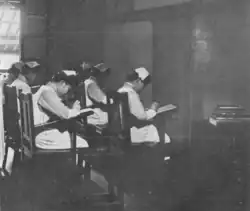Students at Hsiang-Ya School of Nursing c. 1917, taking examination in bacteriology.