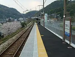 The station consists of one side platform serving single bi-directional track. Because it is located on an embankment, it is quite high from surrounding houses. The station is are located along Japan National Route 2, but the station building and platform are three stories or higher above the surrounding town.