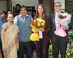 Bill Gates and Melinda Gates, Co-Chairs of the Bill & Melinda Gates Foundation calls on the Union Minister for Road Transport & Highways and Shipping, Nitin Gadkari and his wife Kanchan Gadkari, in New Delhi on 19 September 2014.