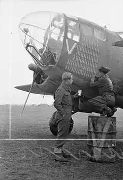 In April 1941, it handed its Wellesleys to 47 Squadron[9] and moved to Egypt, becoming an Operational Training Unit (OTU), converting aircrews onto the Bristol Blenheim, Douglas Boston, Martin Maryland and later Martin Baltimore twin-engined bombers.[4] From October 1941, a Maryland-equipped detachment of the squadron was deployed on long-range strategic reconnaissance duties, while the rest of the squadron continued as an OTU.[10] In May 1942, the squadron returned to operational light bomber duties, equipped with the new Baltimore bomber, supporting the British Eighth Army over North Africa.[11] It flew its first operation with the Baltimore on 23 May 1942, when four unescorted Baltimores were sent to bomb a German-held airfield. They were attacked by German fighters, with two bombers shot down and the other two, badly damaged, crash-landing at their base. Following this mission, unescorted bombing missions were abandoned, and the aircraft's American .30 inch Browning machine guns, which had jammed during the engagement, were replaced by guns firing British .303 inch ammunition.[12] It moved to Malta in July 1943, participating in the Allied invasion of Sicily and the Italian Campaign, being based in Italy from September 1943. It was disbanded on 12 August 1944, being renumbered No. 30 Squadron, South African Air Force.[5]