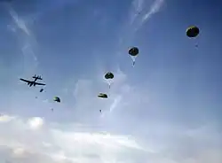 No. 295 Squadron was formed on 3 August 1942 at RAF Netheravon as an airborne forces unit, equipped with Whitley Mk.Vs. These were from November 1942 used in leaflet dropping missions over France, supplemented in February 1943 with Halifax Mk.Vs, which they used in Operation Beggar. By October 1943 the squadron converted to the Albemarle Mk.I. With these aircraft the squadron shared – with 570 Sqn. – the honour of being the first to drop troops over Normandy on the eve of D-Day, while other aircraft of the squadron towed gliders to the landing zones. The Albemarles gave way in July 1944 to the Stirling Mk.IV. The squadron used these aircraft during the Battle of Arnhem during Operation Market Garden, again towing gliders.