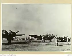 From January 1943, the squadron concentrated on bombing missions rather than the maritime mission which it had previously. In May that year, it withdrew from front line operations as its Hudsons were modified for the transport role, while in November, before becoming operational, it re-equipped with Douglas Dakotas.[20][22] The squadron flew in support of British and Commonwealth forces during the Battle of the Admin Box in February 1944[23] and of Operation Thursday, the second Chindit operation in March.[20] It was heavily deployed in dropping supplies during the Battle of Imphal, continuing to fly through the heavy rains of the Monsoon season.[24] The squadron was withdrawn for operations for rest in August 1944, returning to supply dropping in November, continuing these duties and more general transport flying until the end of the war in August 1945.[20] The squadron disbanded on 15 March 1946 at Mingaladon, near Rangoon (now Yangon), Burma.[14]