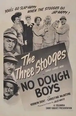 No Dough Boys is a 1944 short subject directed by Jules White starring American slapstick comedy team The Three Stooges (Moe Howard, Larry Fine and Curly Howard). It is the 82nd entry in the series released by Columbia Pictures starring the comedians, who released 190 shorts for the studio between 1934 and 1959.