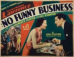 No Funny Business is a 1933 British comedy film directed by Victor Hanbury and starring Laurence Olivier, Gertrude Lawrence, Jill Esmond and Edmund Breon.[1] It was written by Hanbury and Frank Vosper based on a story by Dorothy Hope.