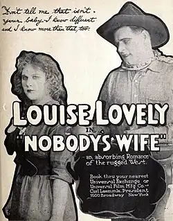 Nobody's Wife is a 1918 American silent drama film directed by Edward LeSaint and starring Jack Hoxie, Louise Lovely and Alfred Allen.[1]