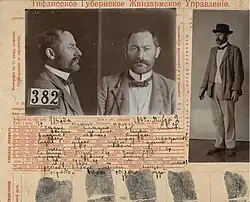 A mugshot of Zhordania made in 1908 by the Tsarist secret police