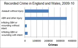 Number of recorded crimes (2009–10). Categories approximate non-fatal offences against the person.