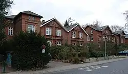 In 1884, Christian Lahusen,[2] a textile manufacturer from Bremen, set up the Norddeutsche Wollkämmerei & Kammgarnspinnerei (North German Wool Combing and Worsted Spinning Mill) next to the railway line in Delmenhorst, which brought wool from Bremen docks. The family business expanded into a major concern producing a quarter of all the world's rough yarn and employed almost 4,500 workers in the complex. Labour came from Eastern Europe. Between 1885 and 1905 the population of Delmenhorst tripled causing a chronic lack of housing. The firm responded by building ever more company housing on the “Nordwolle” site.