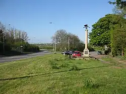 Norman Cross was the site of one of the earliest purpose-built prisoner-of-war camps, Norman Cross Prison, and a memorial to the prisoners who died there was erected in 1914 and relocated in 2005. It takes the form of a bronze imperial eagle on a column and is grade II listed.[4]