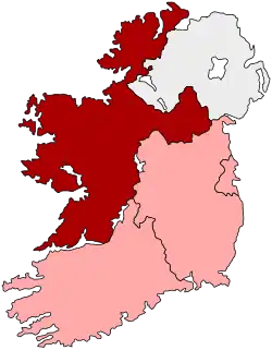 From 2009 it comprised the counties of Cavan, Clare, Donegal, Galway, Leitrim, Longford, Mayo, Monaghan, Roscommon, Sligo and Westmeath; and the city of Galway.[1]