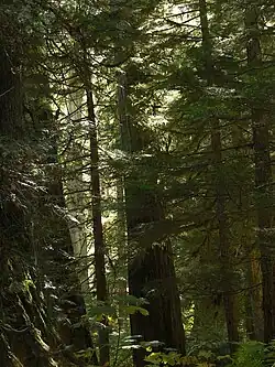 The North American inland temperate rainforest is a 7 million hectare disjunct temperate rainforest spreading over parts of British Columbia in Canada as well as Washington, Idaho and Montana on the US side.[1] Its patches are located on the windward slopes of the Rocky Mountains and the Columbia Mountains, extending roughly over 1000km from 54° North to 45° North.[2] It is one of the largest inland temperate rainforests in the world.[3]