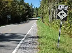 First NC 183 West sign, near Jonas Ridge