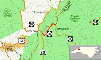 North Carolina Highway 183 (NC 183) is a primary state highway in the U.S. state of North Carolina. It traverses from US 221, in the community of Linville Falls, to NC 181, near the community of Jonas Ridge.